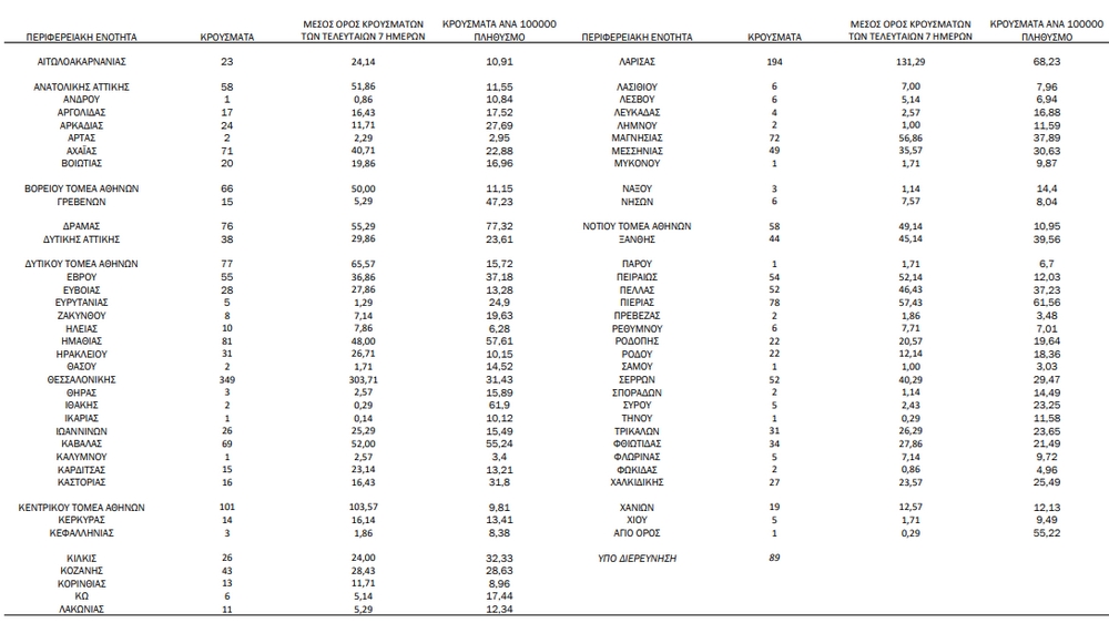 Αναλυτικά η διασπορά των νέων κρουσμάτων σήμερα στην υπόλοιπη Ελλάδα