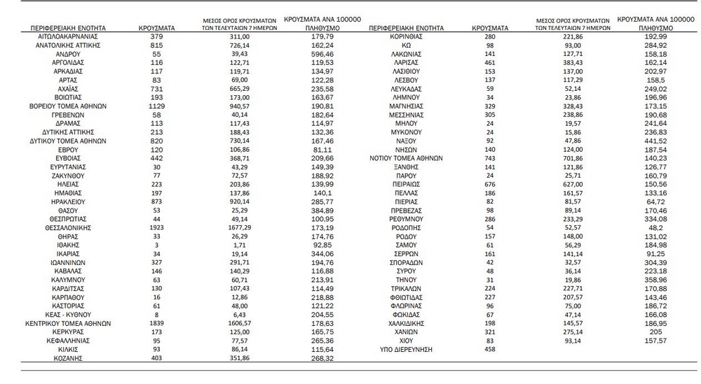 Αναλυτικά η διασπορά των νέων κρουσμάτων σήμερα στην υπόλοιπη Ελλάδα