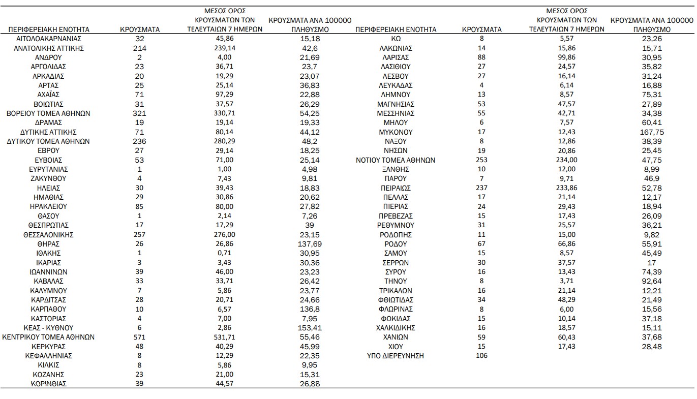 Αναλυτικά η διασπορά των νέων κρουσμάτων σήμερα στην Ελλάδα