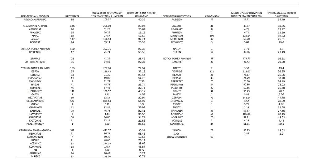 Αναλυτικά η διασπορά των νέων κρουσμάτων σήμερα στην υπόλοιπη Ελλάδα