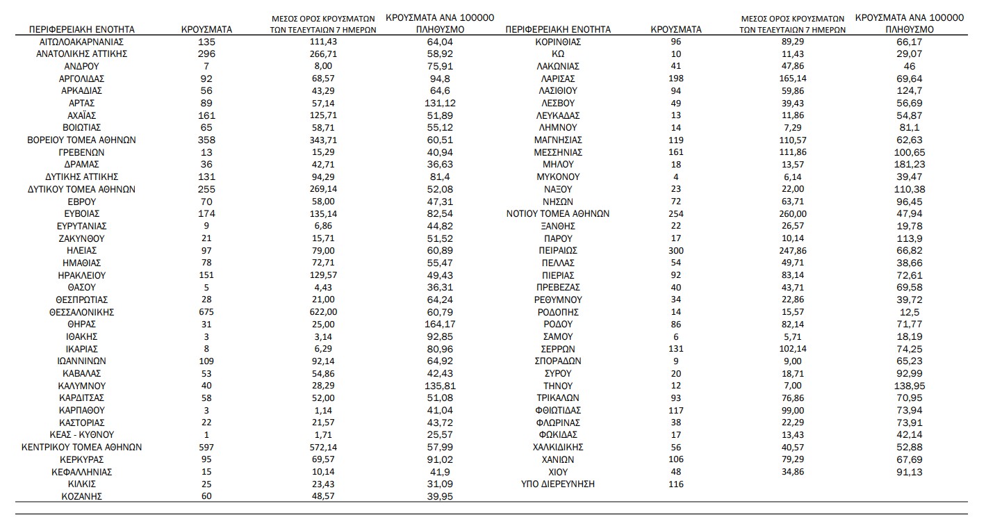 Αναλυτικά η διασπορά των νέων κρουσμάτων σήμερα στην υπόλοιπη Ελλάδα