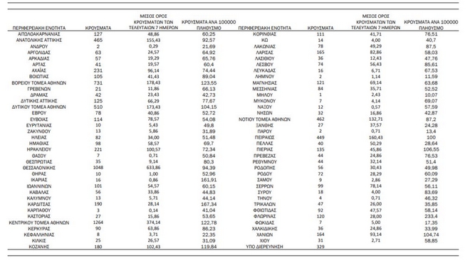 Τα κρούσματα στην υπόλοιπη Ελλάδα