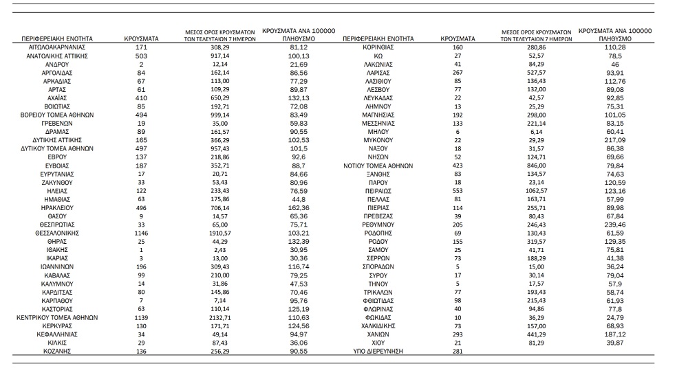 Αναλυτικά η διασπορά των νέων κρουσμάτων σήμερα στην υπόλοιπη Ελλάδα