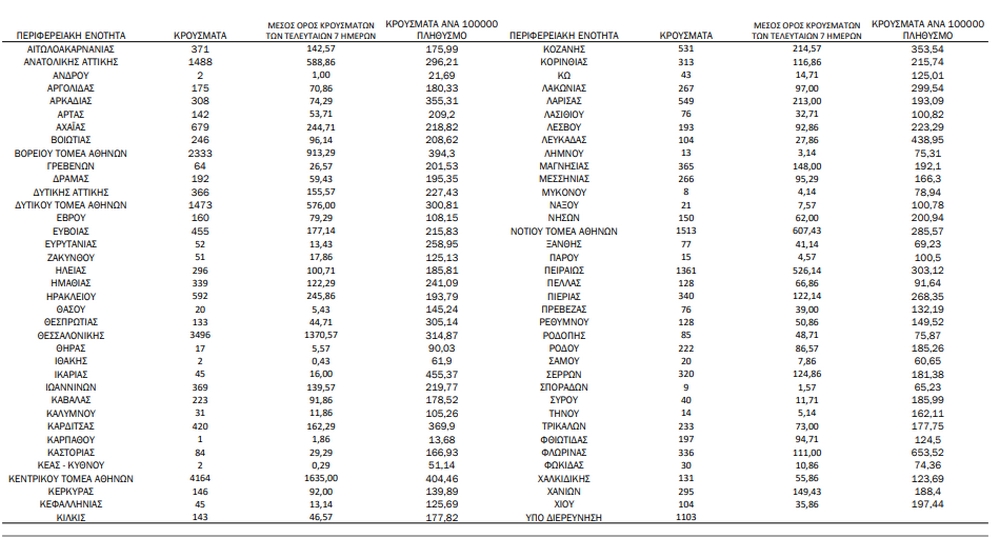 Αναλυτικά η διασπορά των νέων κρουσμάτων σήμερα στην υπόλοιπη Ελλάδα