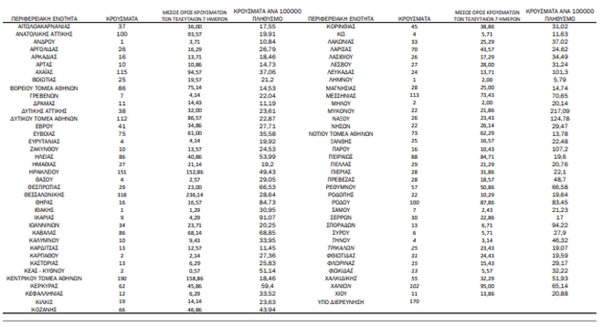 Αναλυτικά η διασπορά των νέων κρουσμάτων σήμερα στην υπόλοιπη Ελλάδα