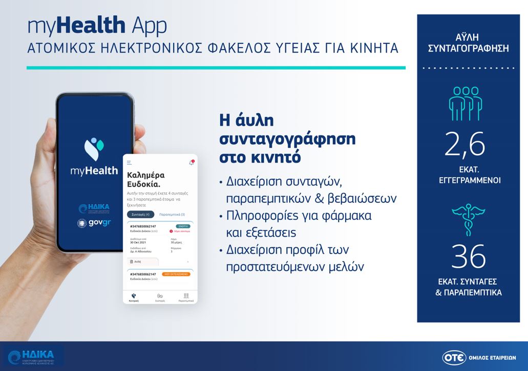 Η εφαρμογή myHealth αποτελεί το επόμενο βήμα του έργου της άυλης συνταγογράφησης, το οποίο επίσης υλοποιήθηκε επιτυχώς από τον Όμιλο ΟΤΕ σε συνεργασία με την Byte, και μάλιστα, σε χρόνο – ρεκόρ.