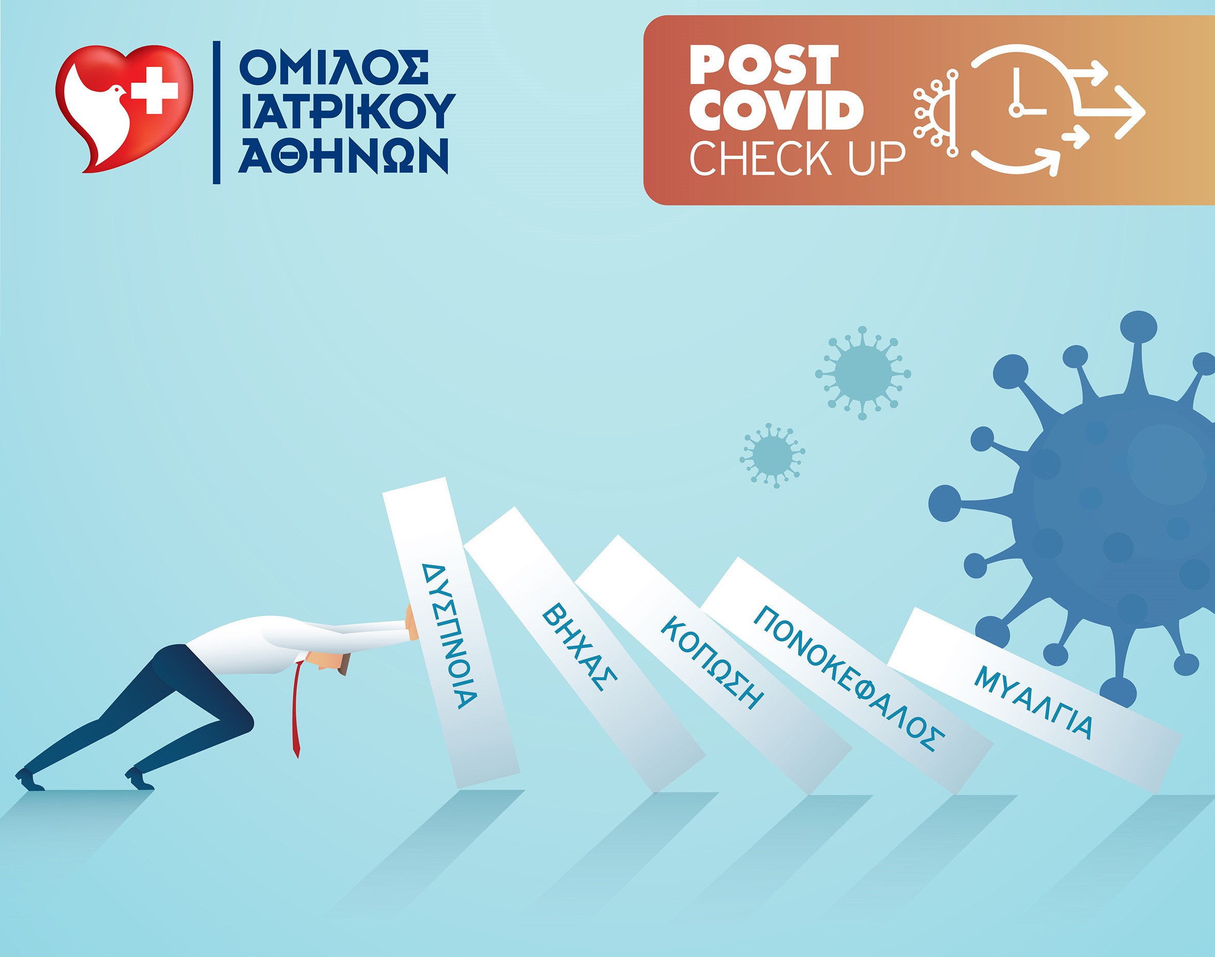Το Post Covid Check up από τον Όμιλο Ιατρικού Αθηνών, περιλαμβάνει έναν πλήρη κλινικό και εργαστηριακό έλεγχο για την αντιμετώπιση και αποκατάσταση των ασθενών που νόσησαν με κορωνοιό.