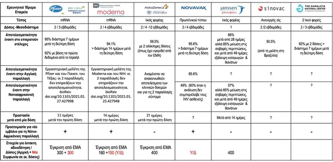 Ο καθηγητής Ηλίας Μόσιαλος δημοσίευσε πίνακα με τη συγκριτική μελέτη των 7 εμβολίων και στοιχεία για την αποτελεσματικότητα στο επικρατούν στέλεχος και τις δύο μεταλλάξεις.