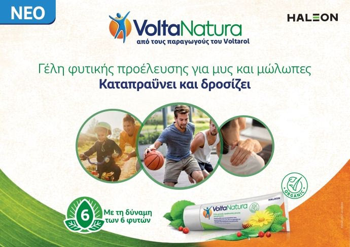 Το νέο VoltaNatura, από τους παραγωγούς του Voltarol, έρχεται για να βοηθήσει στη διαχείριση των καταπονημένων μυών, προσφέροντας ανακούφιση με φυσικά συστατικά υψηλής ποιότητας.