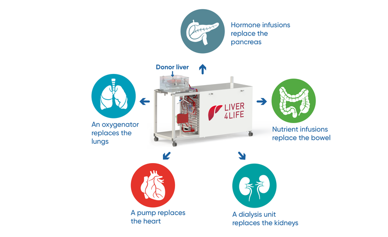Το εν λόγω μηχάνημα μιμείται το ανθρώπινο σώμα στον καλύτερο δυνατό βαθμό, προκειμένου να παράσχει στο προς μεταμόσχευση ήπαρ ιδανικές συνθήκες για τη διατήρηση του.