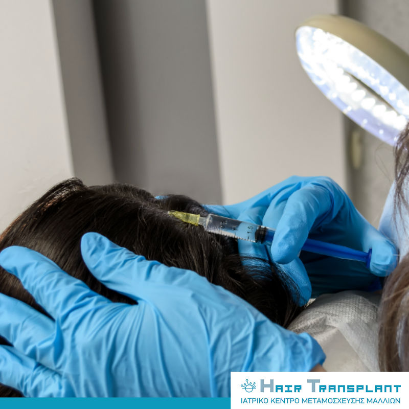Έγχυση του εμπλουτισμένου πλάσματος στις αραιωμένες περιοχές του τριχωτού.