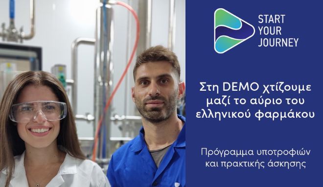 Τις πόρτες της σε νέους και νέες επιστήμονες που επιθυμούν να ξεκινήσουν την επαγγελματική τους πορεία στον συναρπαστικό χώρο της επιστήμης, ανοίγει, για 6η συνεχόμενη χρονιά, η DEMO, ηγέτιδα εταιρεία στον κλάδο στις φαρμακοβιομηχανίας, με το πρόγραμμα υποτροφιών και πρακτικής άσκησης Start Your Journey.